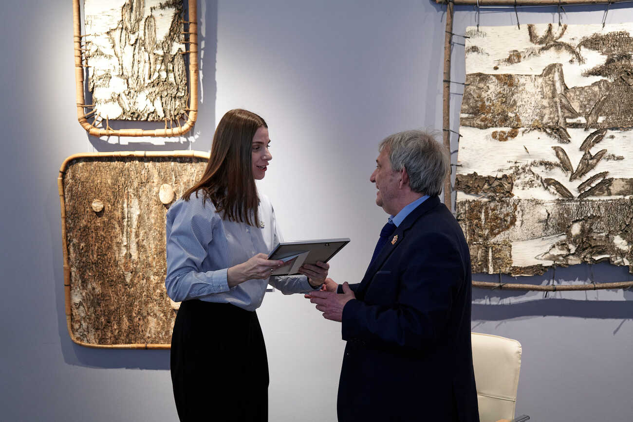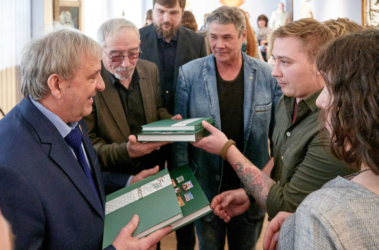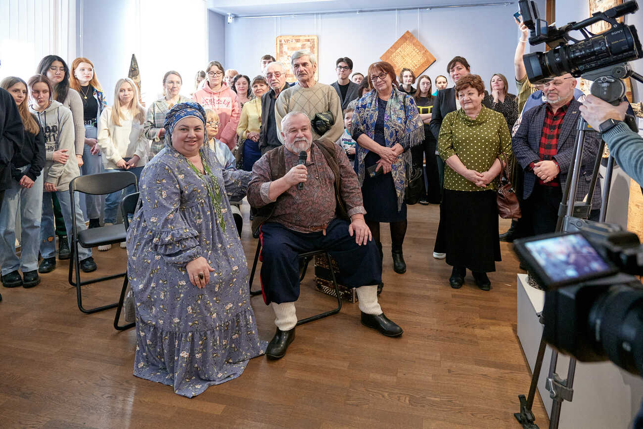С открытием выставки Олега Дмитриевича поздравили и вручили благодарственные письма председатель комитета по вопросам образования, культуры и национальной политики Парламента Кузбасса – И.Ф. Федорова, исполняющая обязанности министра культуры и национальной политики Кузбасса – Ю.Л. Тихонова. Слова поздравления в адрес художника были сказаны исполняющей обязанности заместителя главы города Прокопьевска по социальным вопросам – О.В. Сергеевой, директором центра народного творчества Кузбасса – Н.В. Орловой. Душевной песней прозвучало поздравление патриарха художественной бересты Кузбасса – Ю.М. Михайлова (г. Мариинск).