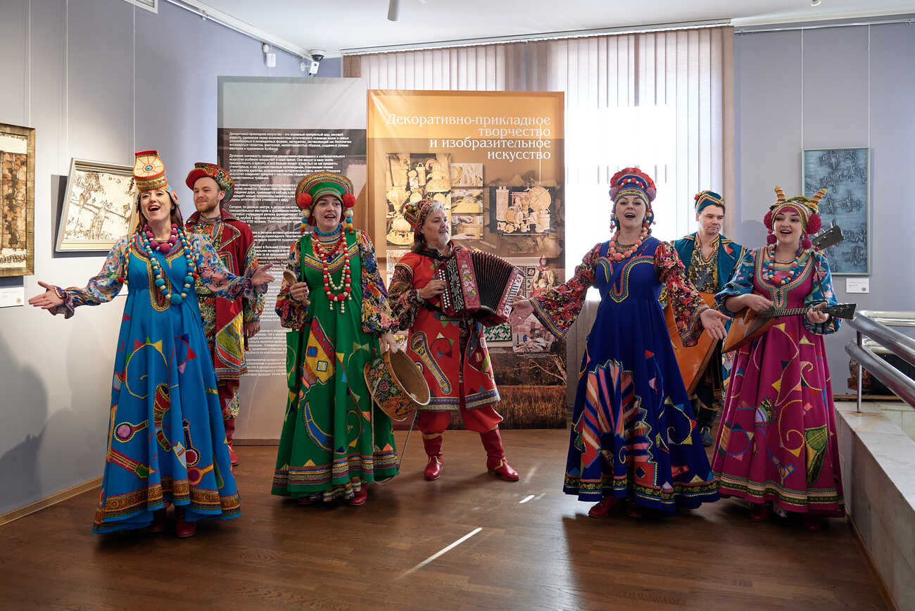 На протяжении всего открытия выставки выступал и радовал народный коллектив фольклорного ансамбля «Скоморохи» (г. Прокопьевск).