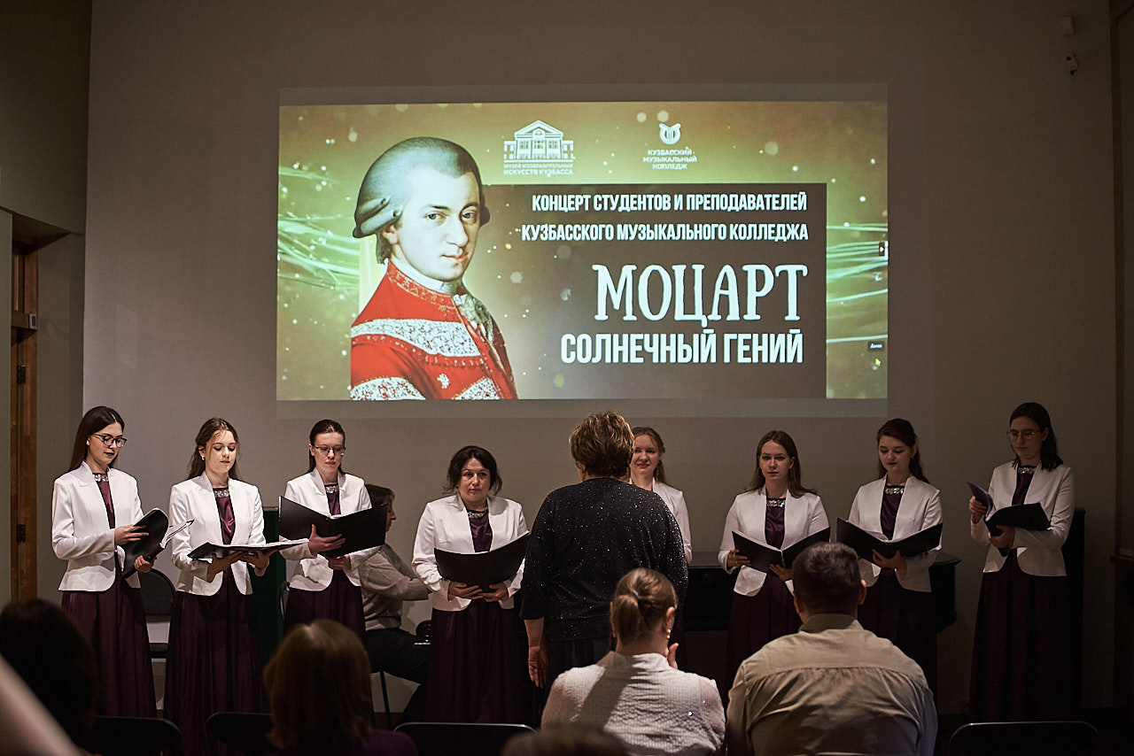 Торжественный концерт «Моцарт. Солнечный гений», приуроченный к юбилею великого композитора, состоялся в Музее изобразительных искусств Кузбасса. В исполнении студентов и преподавателей Кузбасского музыкального колледжа прозвучали яркие и жизнерадостные произведения Вольфганга Амадея Моцарта. Гости мероприятия услышали изящные и элегантные мелодии, исполненные на фортепиано, гобое, виолончели с участием вокала.