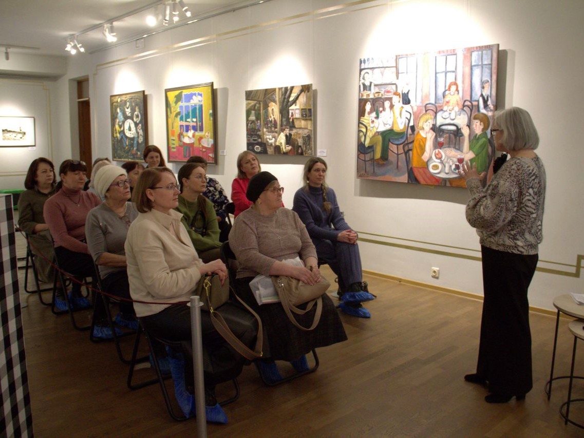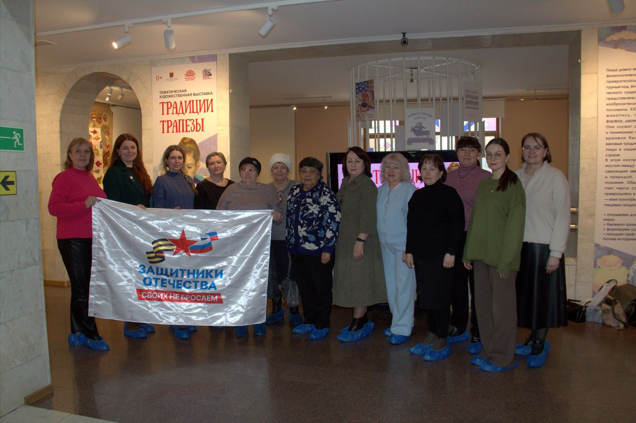 В рамках проекта в музее прошло благотворительное мероприятие для подопечных Фонда «Защитники Отечества» – членов семей участников СВО. Искусствовед Марина Чертогова прочитала лекцию «Русская икона: каноны и символы», рассказала о традициях иконописи, символике цвета, значении композиции и расположении фигур, символизме устройства храмов.